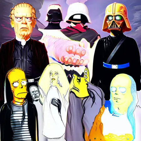 이 모델은 핀터레스트 사용자가 만든 40개의 디지털 콜라주로 학습되었습니다. 효과는 가중치에 따라 크게 달라질 수 있으며, 이는 샘플 이미지에서 확인할 수 있습니다.