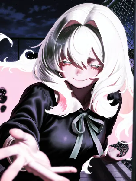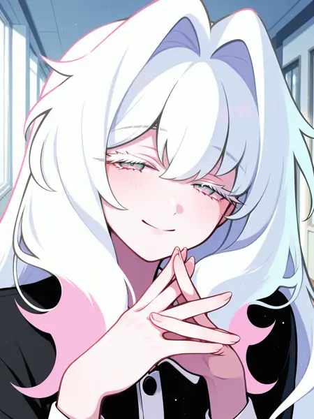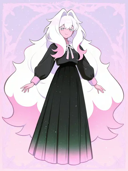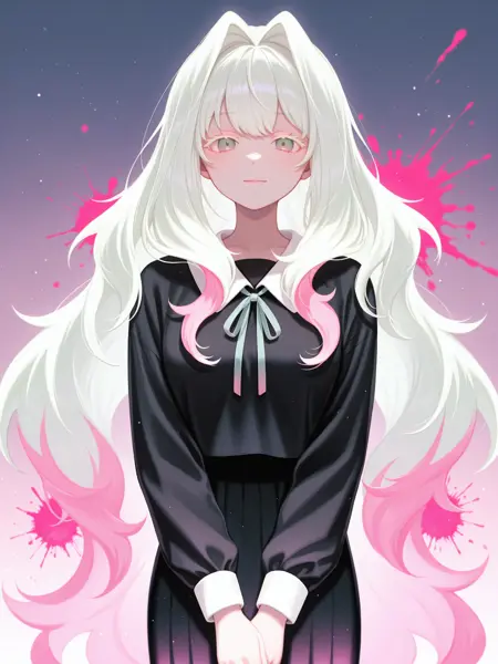 CR_WGC, 1girl, two-tone hair, gradient eyes, very long hair, white eyelashes, hair intakes