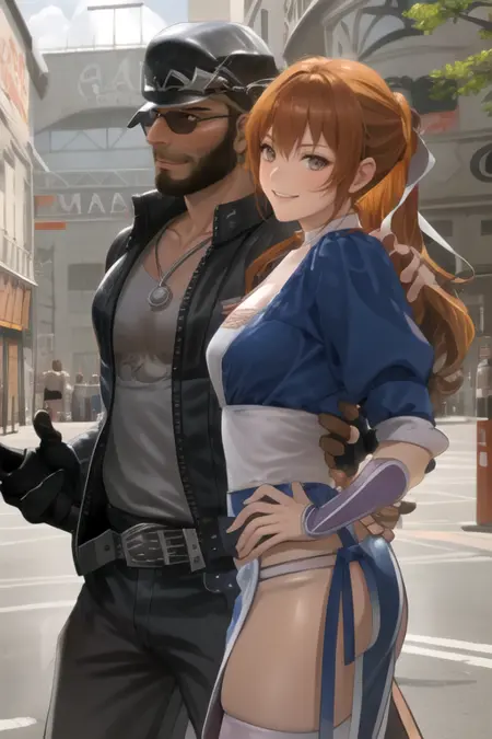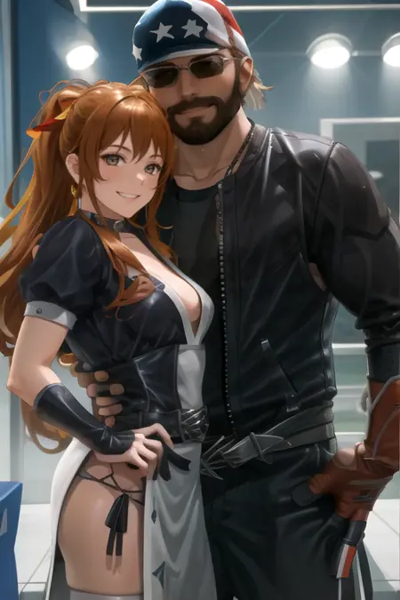 BassKasumi, a man and a woman, hetero, standing, smile, cowboy shot