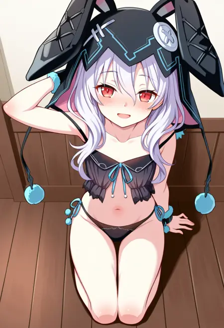 触发词-inverse yoshino,红眼,长发,兔头帽,眼罩,露脐,黑色内裤,无指手套,露趾腿饰,毛绒兔子