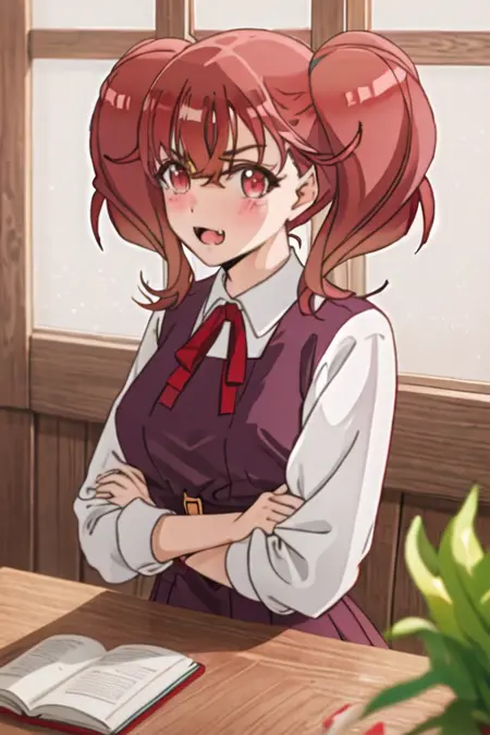 The trigger word is sakurabakoma_edomaeelf, and the recommended tags are best quality, masterpiece, highres, solo, {sakurabakoma_edomaeelf:1.15}, red_hair, twintails, red_eyes, ribbon, neck_ribbon, bangs, red_ribbon, blush.