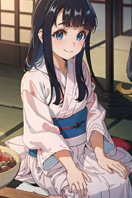 触发词为 koganeikoyuzu_edomaeelf,推荐标签为:best quality, masterpiece, highres, solo, {koganeikoyuzu_edomaeelf:1.15}, black_hair, long_hair, bangs, blue_eyes, blush, smile, blunt_bangs。