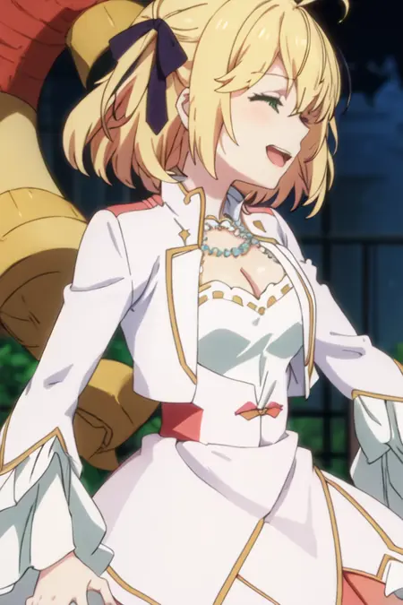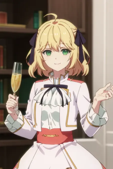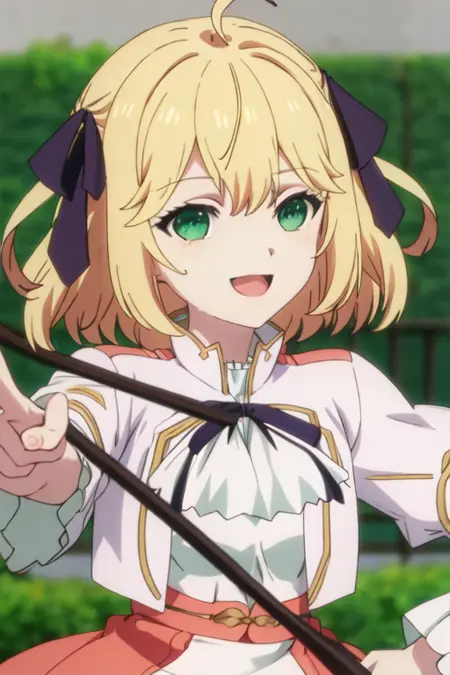 トリガー語は anisphia_wynn_palettia_tenseioujototensaireijounomahoukakumei であり、推奨タグは best quality, masterpiece, highres, solo, {anisphia_wynn_palettia_tenseioujototensaireijounomahoukakumei:1.15}, blonde_hair, green_eyes, bangs, short_hair, ribbon, hair_ribbon, ahoge, hair_between_eyes, smile, black_ribbon, blurry です。