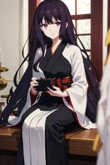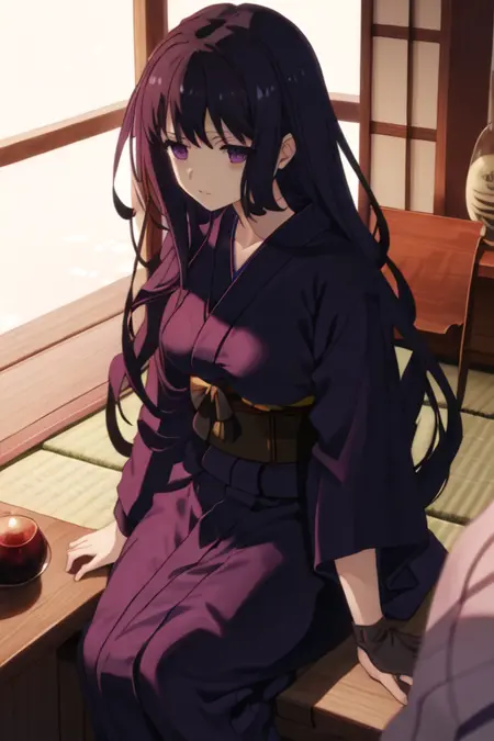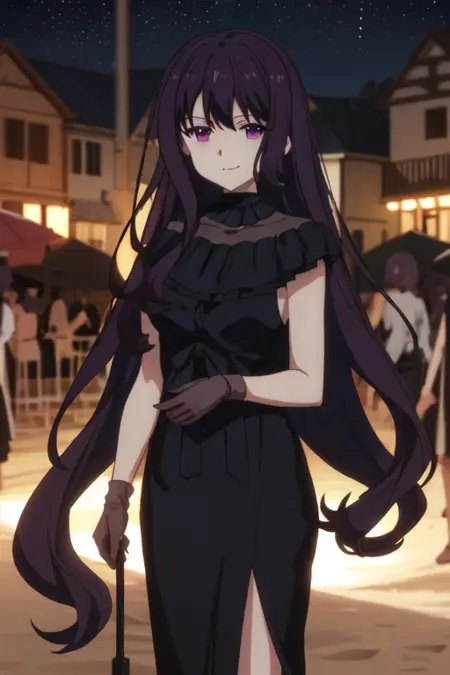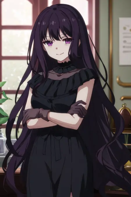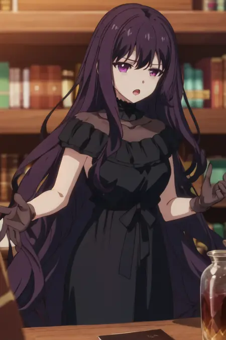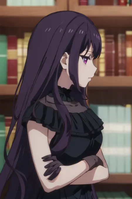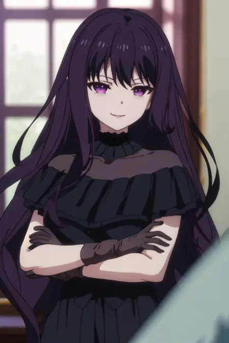 トリガーワードはtilty_claret_tenseioujototensaireijounomahoukakumeiで、推奨タグはbest quality, masterpiece, highres, solo, {tilty_claret_tenseioujototensaireijounomahoukakumei:1.15}, long_hair, bangs, purple_hair, purple_eyes, black_hair, blurryです。