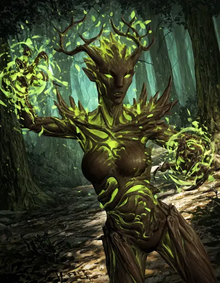 SkyrimSpriggan, no humans, green glow, no eyes, glowing eyes