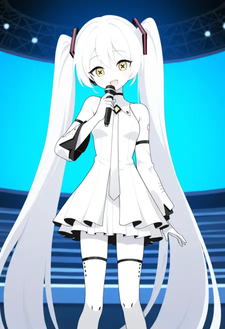 Decagrammatonization, yellow eyes, colored skin, white skin, x-shaped pupils, symbol-shaped pupils, white hair