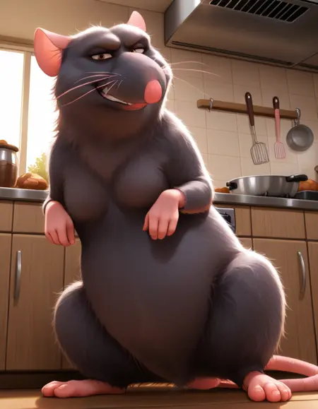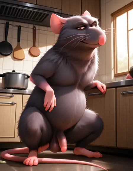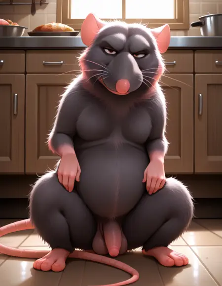 Django, male, rat, feral, dark-grey fur, whiskers, pink ears, pink nose, pink hands, pink feet, pink rat tail