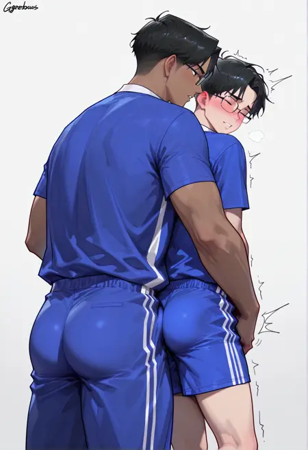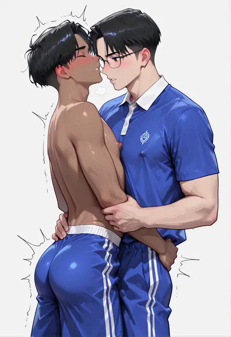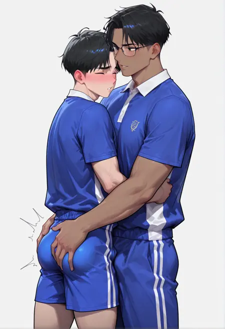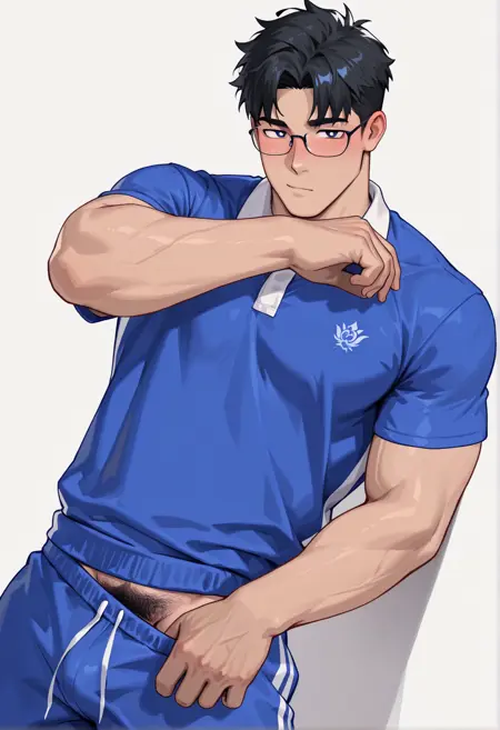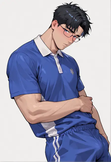 china school uniform, school uniform, shorts, sportswear, blue shirt, blue shorts, blue pants,