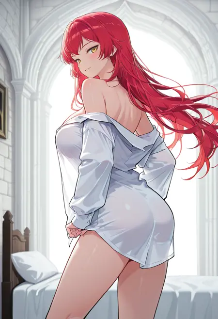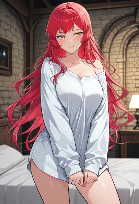 Jeremiah La Monique, red hair, long hair, yellow eyes, bangs,