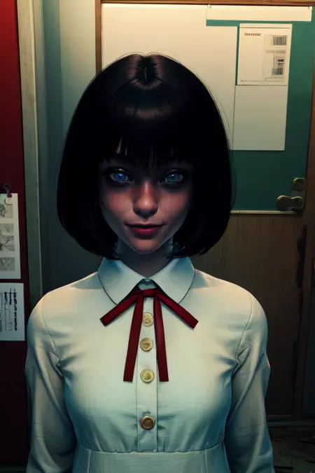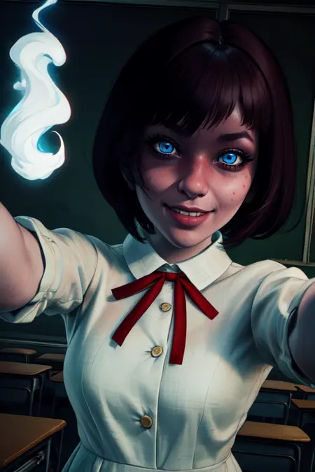 1.5 版本 应带有红色光环,源于眼神接触,但部分发光光环 LoRA 可辅助增强其内在训练效果——光环可能呈现血色或火焰效果,