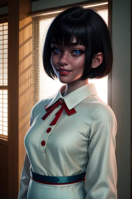 hanakoSan,黑发,刘海,短发或鲍伯头,头发遮住一只眼睛,