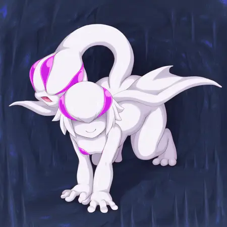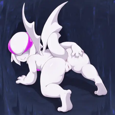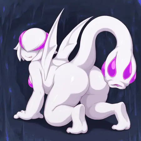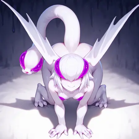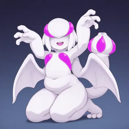 dxcybele、白髪、尾、モンスターガール、前髪、巨大な前腕、巨大な四肢、悪魔の翼、翼、目がない、足、白い肌、趾、色づいた肌、裸体、ふっくらとした体型