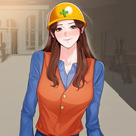 Lee Ji-Woo: lee_ji-woo, piercing light brown eyes, beautiful red hair, beautiful long hair, bangs, huge and shaggy breasts,