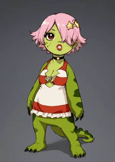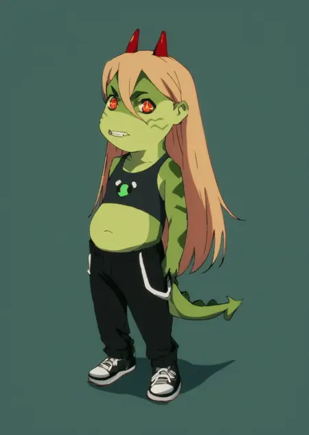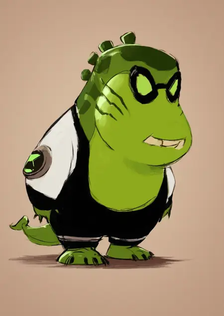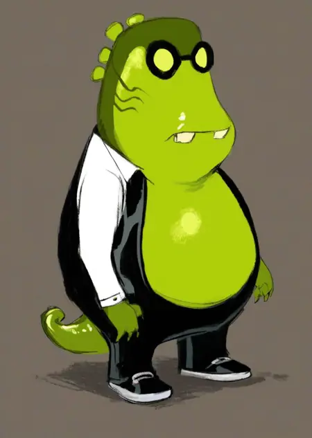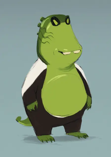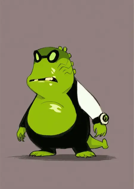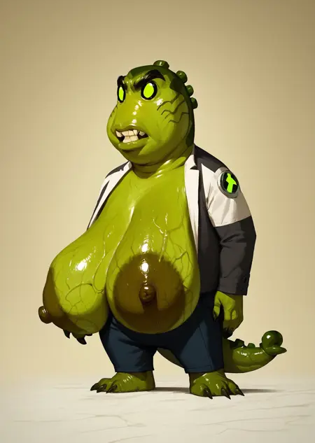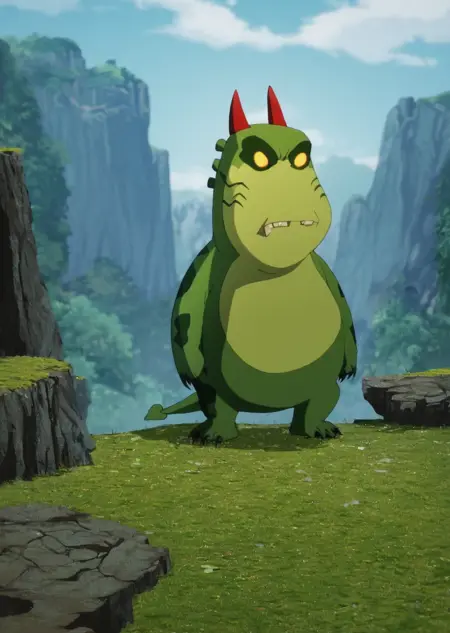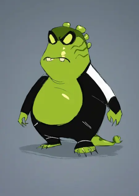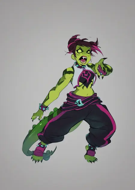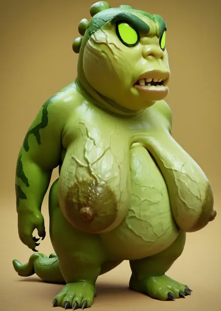 Prompts: upchuck, no humans, full body, claws, teeth, green skin, tail,