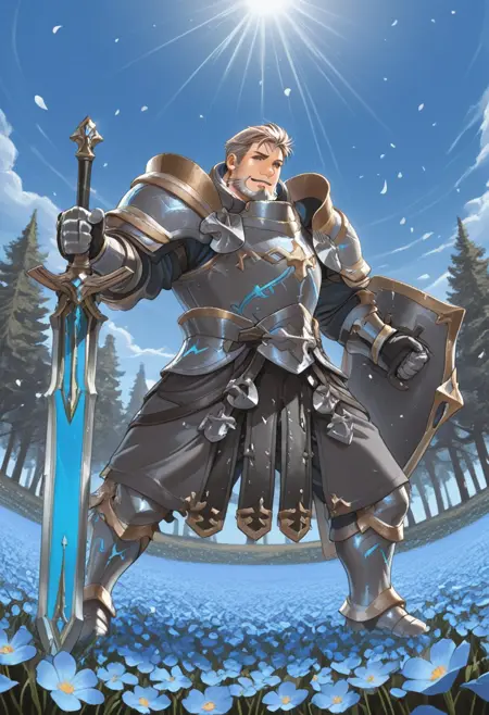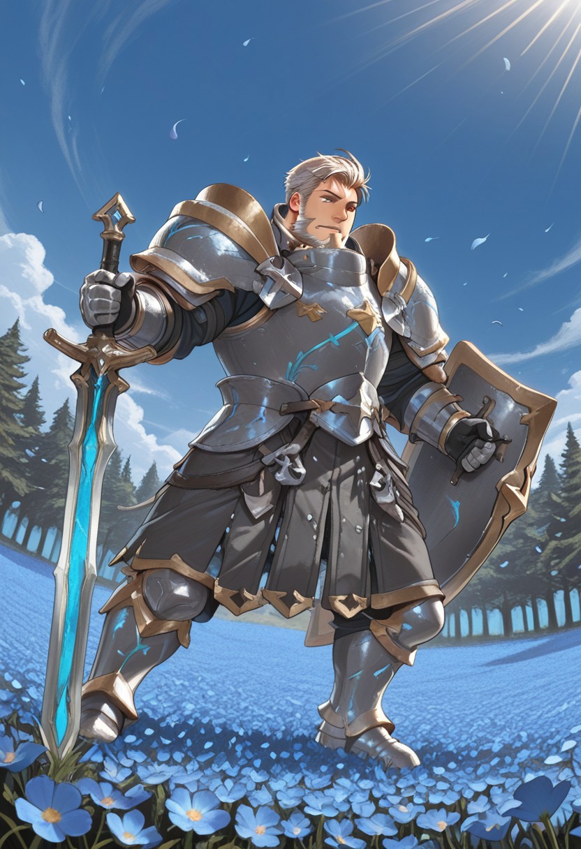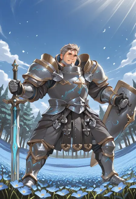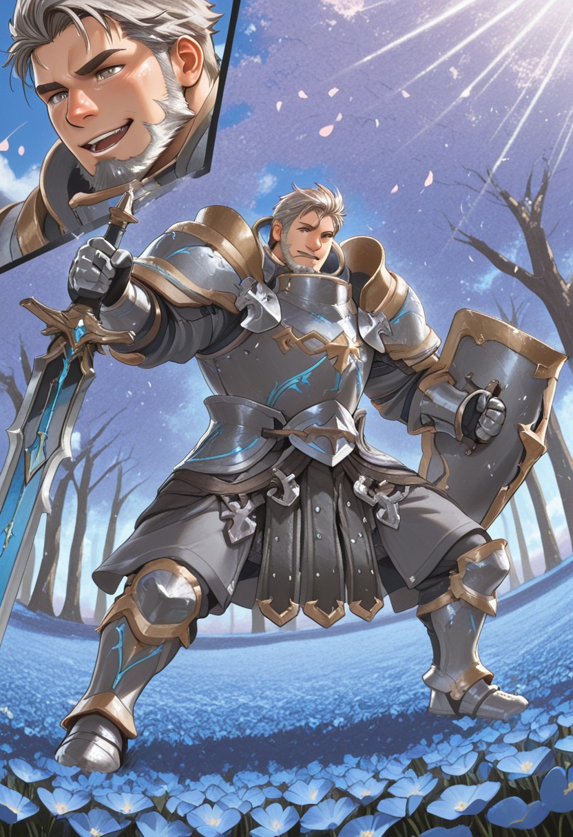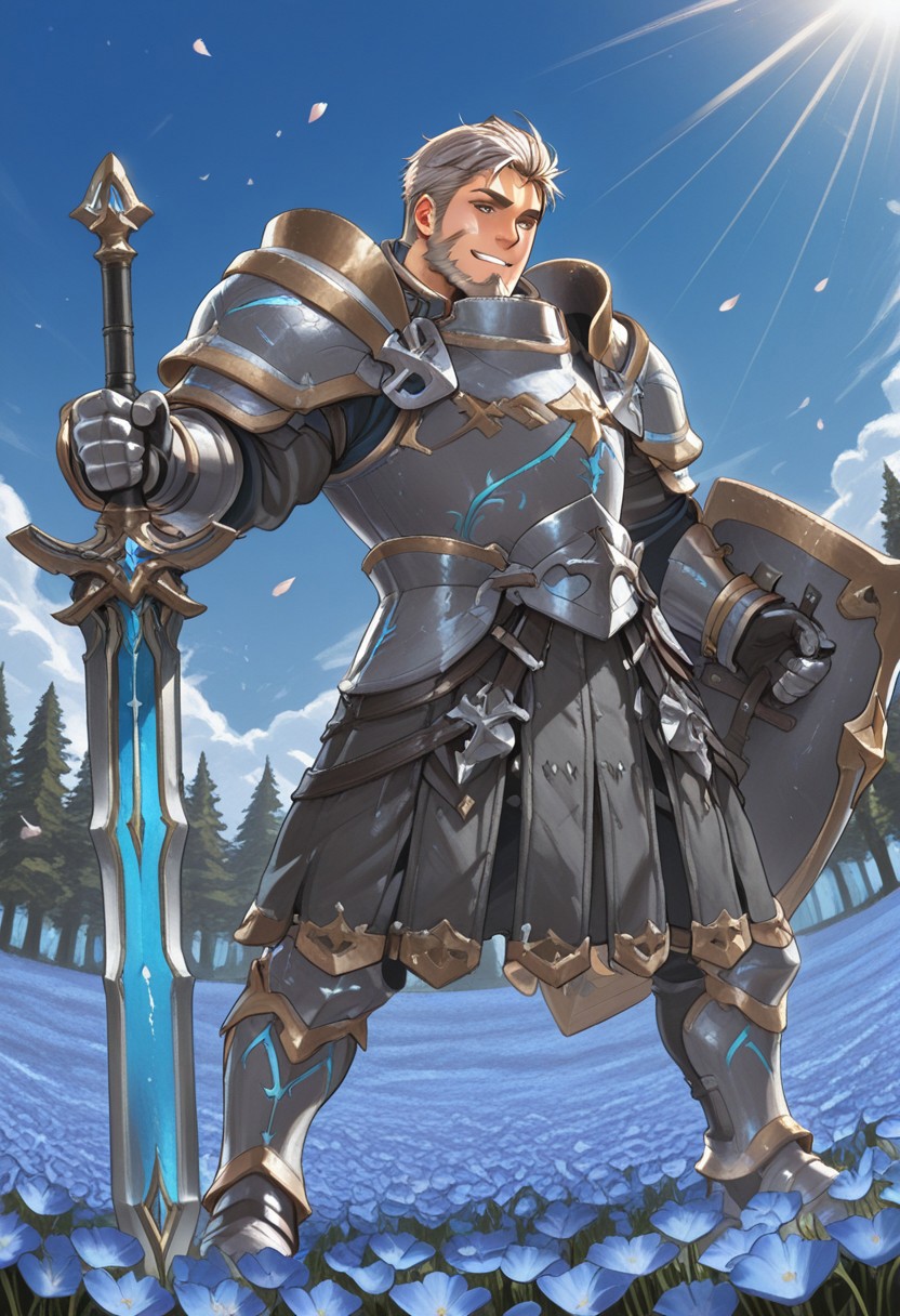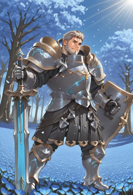 1boy, tagatamedilga, bara, muscular body, grey short hair, grey eyes, beard