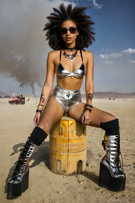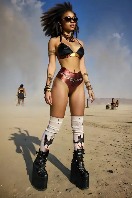 你通常无需特别提示包含的厚底鞋,反而这样有时会导致问题。如果鞋子生成过大,可尝试使用更大的批次来获得理想效果。你也可以提示其他类型的鞋履。