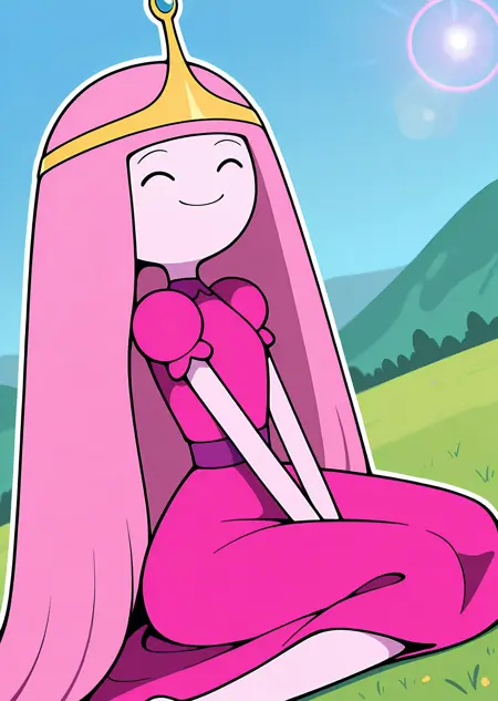 默认服装:oms_pb,圆点眼睛,1个女孩,单独,粉发,粉皮肤,超长发,单独,粉裙,王冠,
