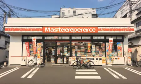 secoma, konbini, scenery, storefront, japan, motor vehicle, car, ground vehicle, scenery, road, shop, street, building, convenience store, city, outdoors, lamppost, sky, sign
