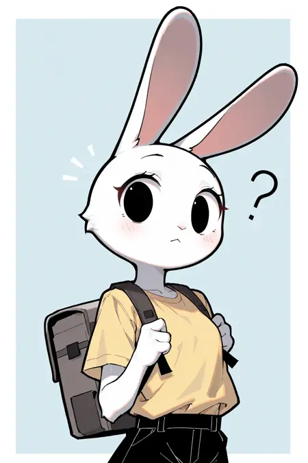 基础:拟人,女性,兔形目,兔子,白色身体,黑色眼睛