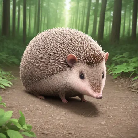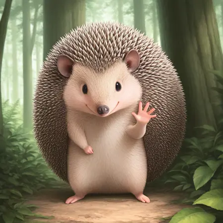Hedgehog, feral, quills, beady black eyes, small limbs, paws