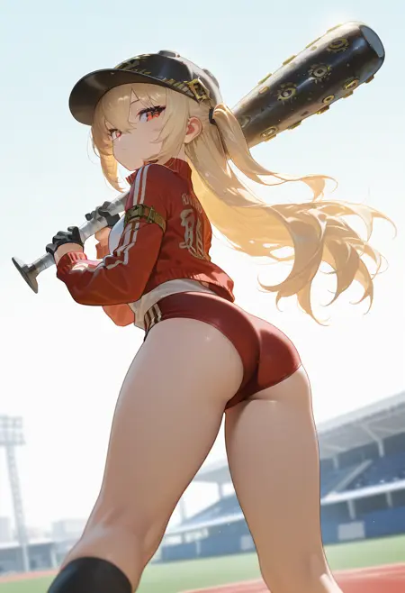 外見のタグ: 1girl, solo, 中程度の胸, 金髪, 赤い目, 目の間に髪, 非常に長い髪, 横髪, サイドポニーテール, 明るい瞳, 白い瞳, 交差した前髪, 高いポニーテール,