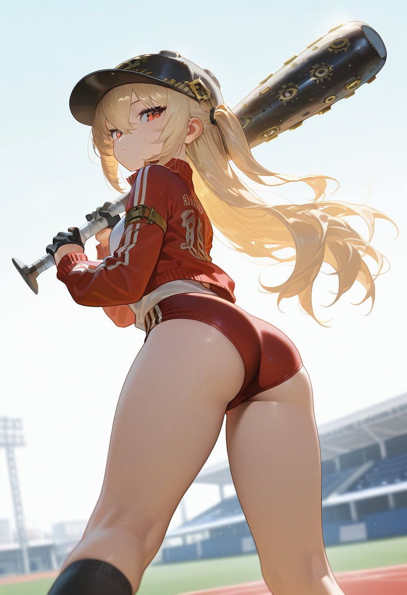 그녀의 복장 태그: 야구 모자, 검은 헬멧, 긴 소매, 검은 장갑, 복부 노출, 열린 재킷, 검은 재킷, 크롭 탑, 검은 셔츠, 짧은 반바지, 검은 반바지, 체인, 검은 벨트, 크롭 재킷, 데님 반바지, 벨트 버클, 크롭 셔츠, 컷오프 반바지, 가스 마스크, 하프 장갑, 목에 걸린 마스크,