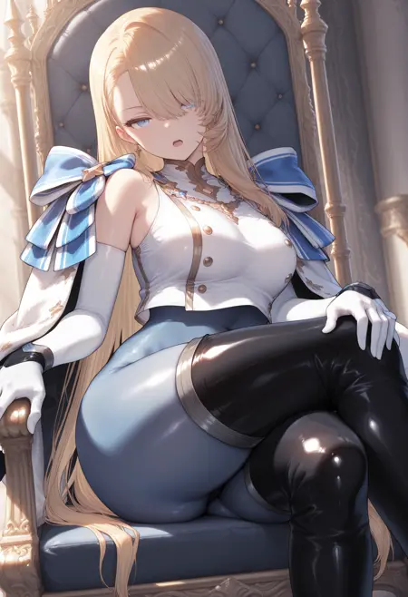 Main outfit tags: bodystocking, sleeveless shirt, elbow gloves, thigh boots (and high heels, if you want them visible). If needed, add white shirt.