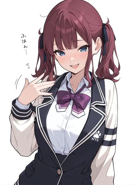 衣装(制服) ・n_clothes,blazer,white sleeves,purple bowtie,black_thighhighs,