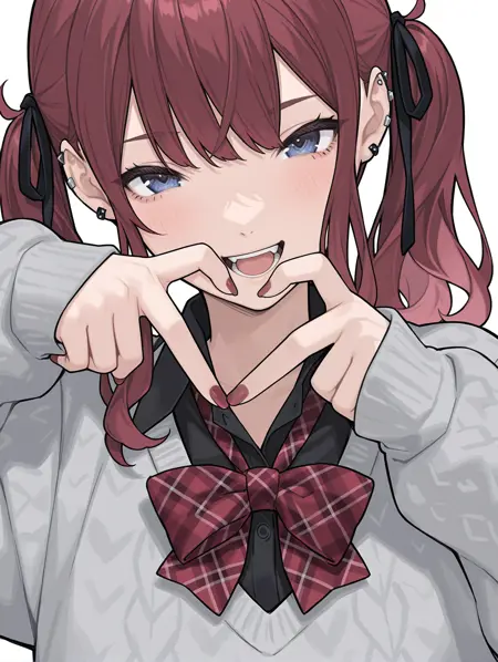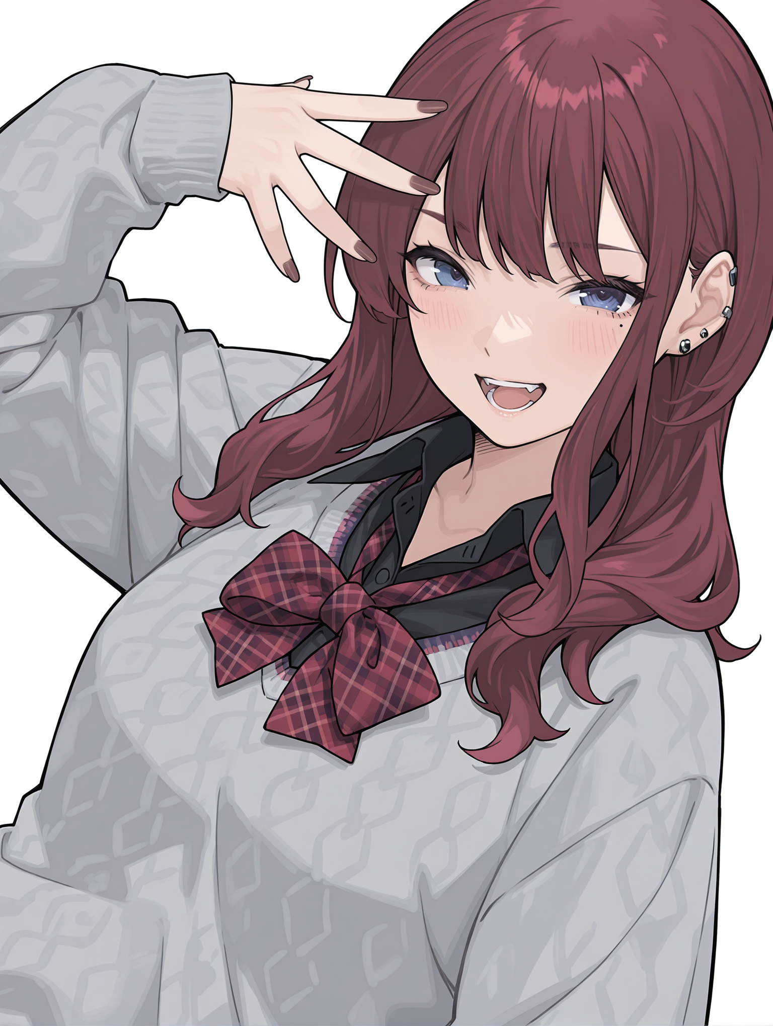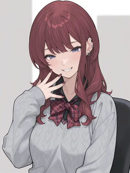 トリガーワード・n_karin,long hair,blue eyes,mole under eye,piercing,red nails,