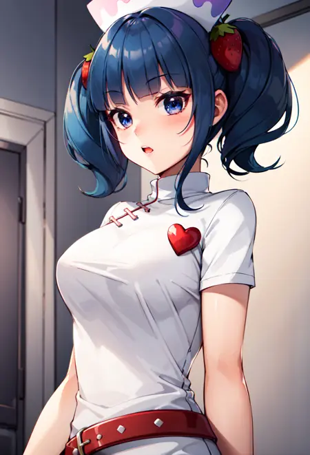 Clothes: nurse outfit, strawberry hair ornament, nurse cap
