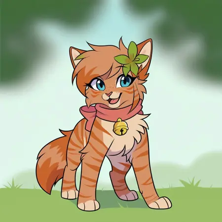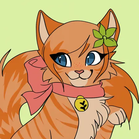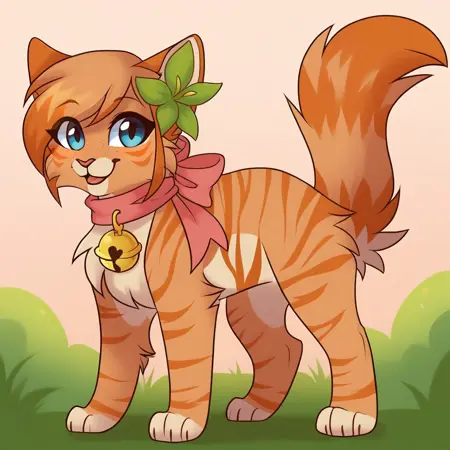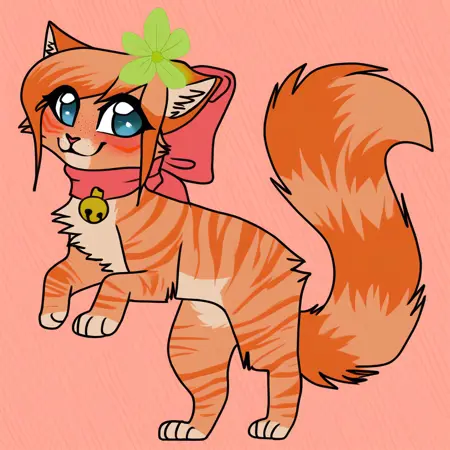 标签:Rea, Ginjaninjaowo_rea, 单人, 兽人, 可爱, 野性, 1女孩, 猫, 虎斑, 猫娘, 橙色毛发, 橙色与杏色橙色毛发, 浅橙色胸部, 浅橙色胯部, 橙色条纹, 杏色橙色与橙色头发, 蓬松尾巴, 睫毛, 蓝眼睛, 粉红色鼻子, 橙色发尖, 橙色尾巴, 条纹尾巴, 猫鼻子, 长尾巴, 橙色刘海, 浅橙色雀斑, 橙色条纹毛发, 粉色蝴蝶结, 粉色颈圈蝴蝶结, 颈部粉色蝴蝶结, 蝴蝶结上金色铃铛, 右侧头部绿色花朵, 右侧胸部橙色心形图案,