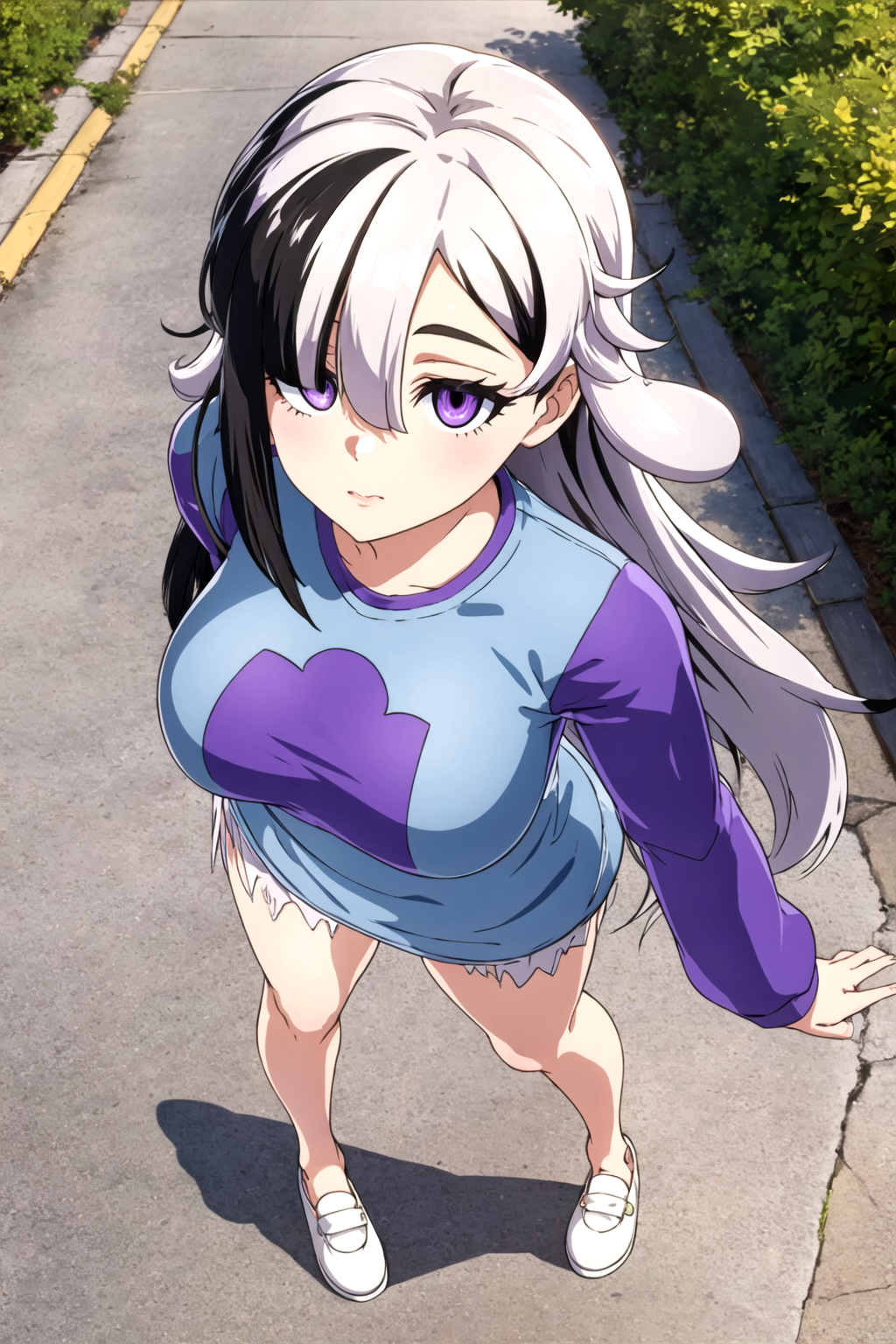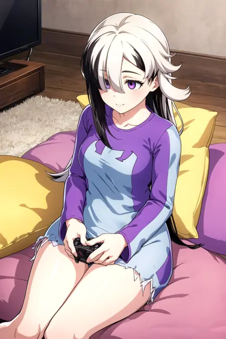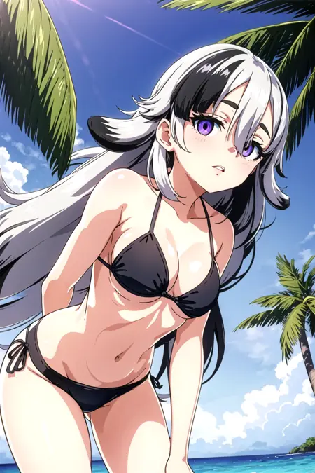 ・MGCM Dia(long hair, multicolored hair, black hair, white hair, hair over one eye, purple eyes, )