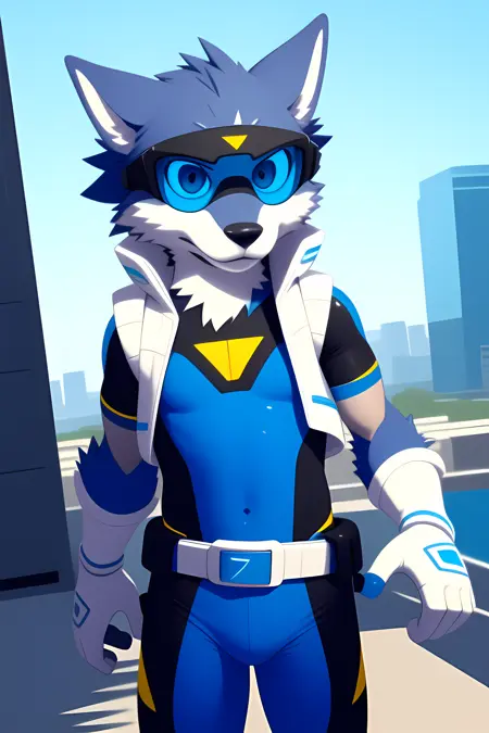옷: 파란 바디수트, 단색 소매 바디수트, 흰 자켓, 흰 장갑, 흰 벨트