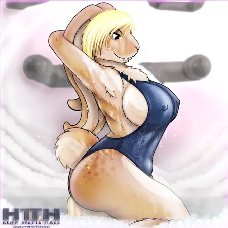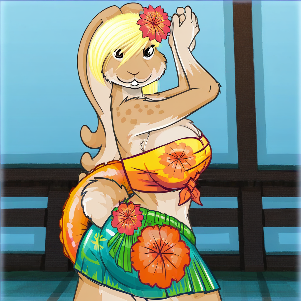furry, blonde hair, large breasts, animal ears, body fur, brown eyes, rabbit girl, tail
