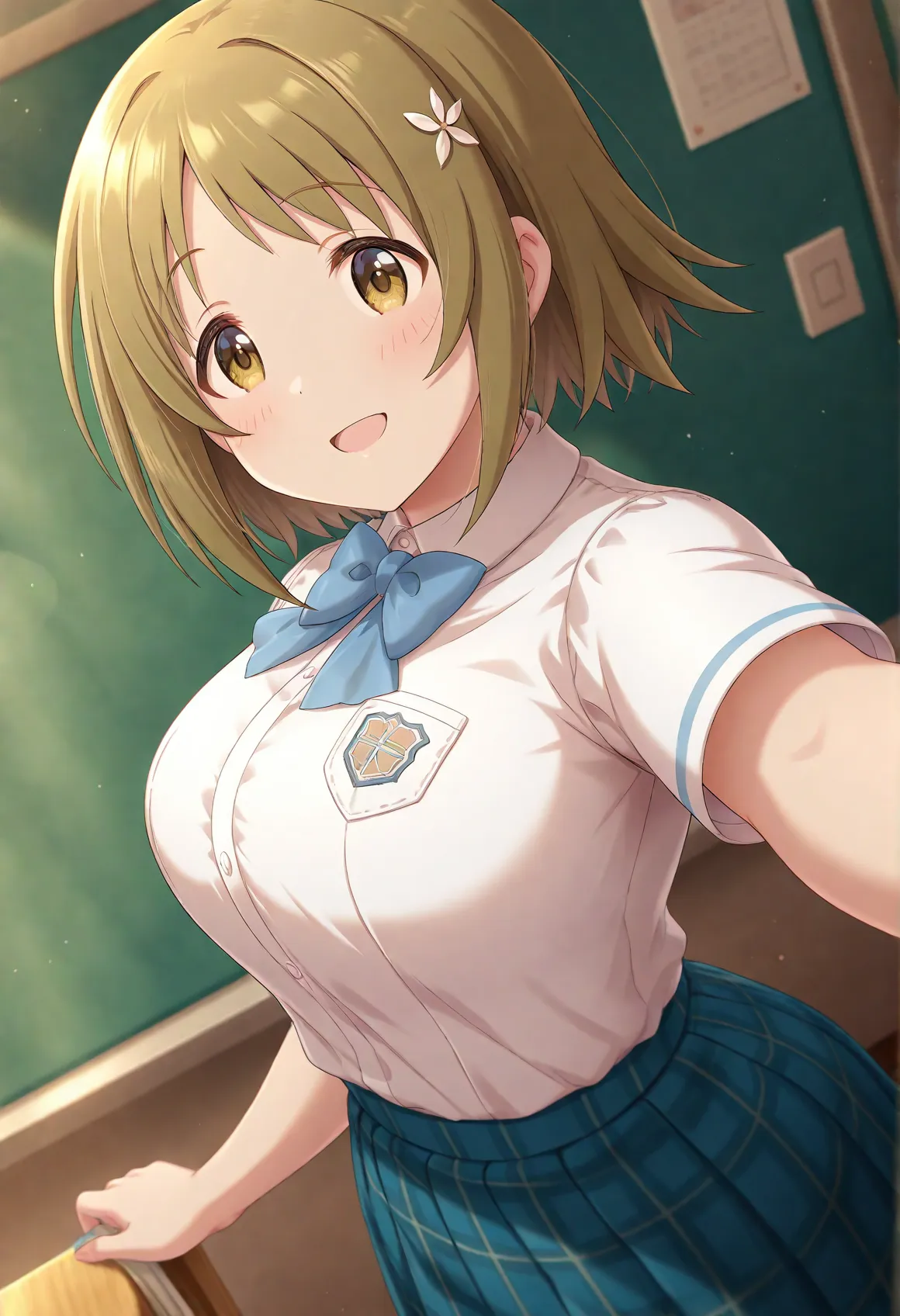 kanakoimas,mimura kanako,brown hair,short hair,brown eyes, hair ornament, hair flower