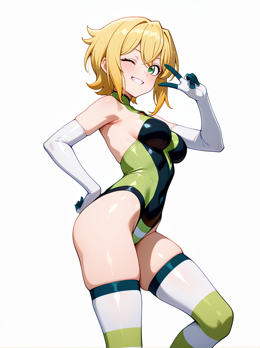 基础外观:金色头发,1个女孩,单独,绿色眼睛,短发