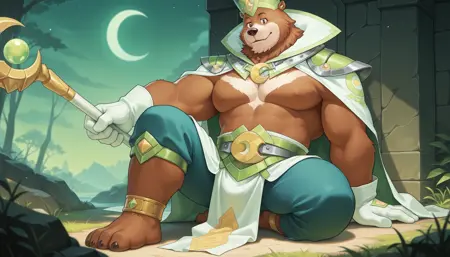 Main prompts: MoonGYEE, moon bear, bear boy, abs, muscular male, brown eyes,