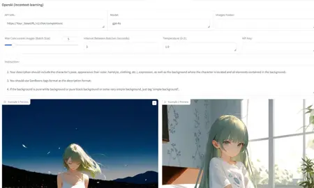 4. ****이 도구에는 '컨텍스트 학습(In-Context Learning)' 모드도 포함되어 있습니다.****(‘incontext-learning’ 레이블이 붙은 페이지를 찾아보세요.) 이 기능을 사용하면 두 개의 참조 이미지와 그에 해당하는 레이블을 업로드할 수 있습니다. LLM은 이 예시들에서 레이블링 스타일을 학습한 후, 나머지 이미지에 적용합니다. LLM이 특정 요구사항(예: 자연어 태그 또는 Danbooru 스타일 태그 출력)에 따라 레이블을 생성하도록 하려면, '컨텍스트 학습' 페이지를 사용하는 것이 매우 권장됩니다.