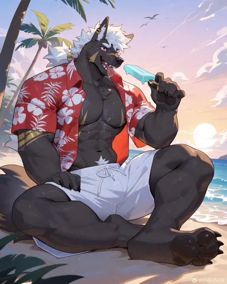 "Alaskanya" and "Littleblackalas" are two aliases used by a single illustrator. He was used to be a top class bara furry illustrator at eastern Asia around 2017~2022. Unfortunately, he withdrawn from furry fandom and deleted all of his social media accounts due to some disputes and scandals.