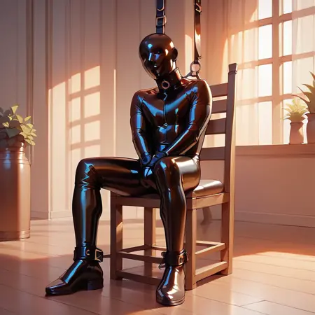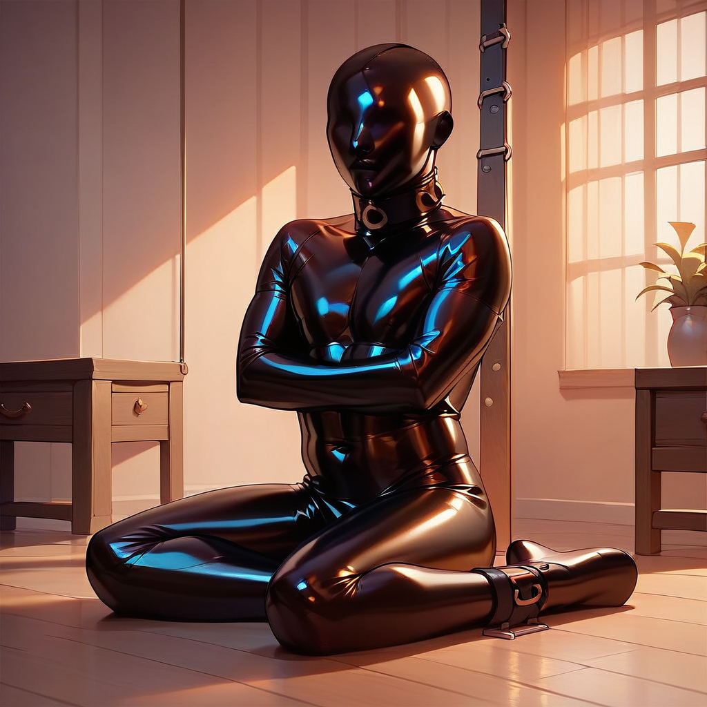 라텍스 또는 고무로 싸인 인물을 포함한 이미지를 생성하는 데 사용합니다. 남성 또는 여성 모두 사용 가능합니다.