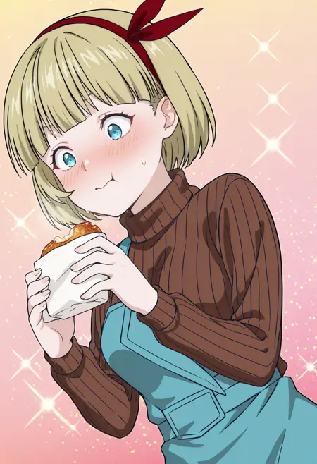 ShokugekiCilla,蓝眼睛,金发,短发,齐刘海,红色发带