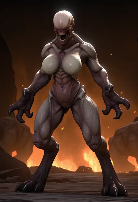 h3kilf, faceless, teeth, 1girl, monster, breasts, muscular, claws
