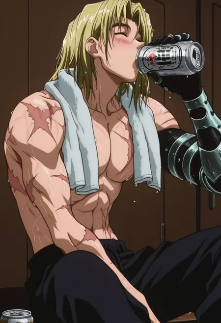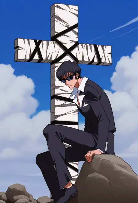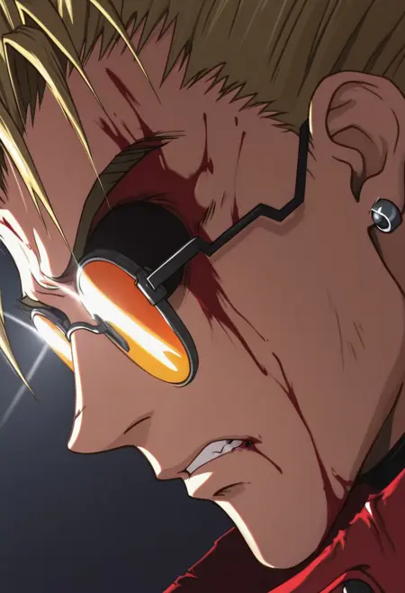 Vash the Stampede+ 태그orange glasses로 바쉬의 정식 안경을 표현 + 태그covered eyes로 안경 뒤에 눈을 가립니다.Nicholas D. Wolfwood의 경우, 멋진 외모를 위해stubble태그를 추천합니다.더 재미있는 이미지를 원할 경우