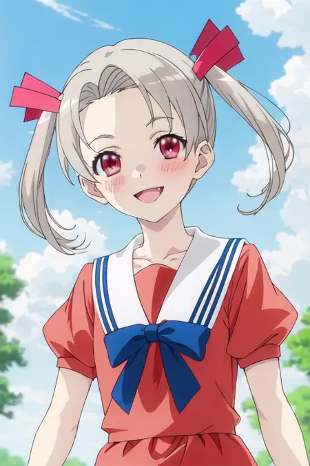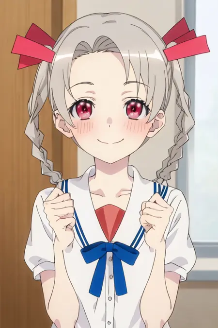The trigger word is rikka_4ninwasorezoreusootsuku, and the recommended tags are best quality, masterpiece, highres, solo, {rikka_4ninwasorezoreusootsuku:1.15}, twintails, blush, red_eyes, smile, ribbon, grey_hair.