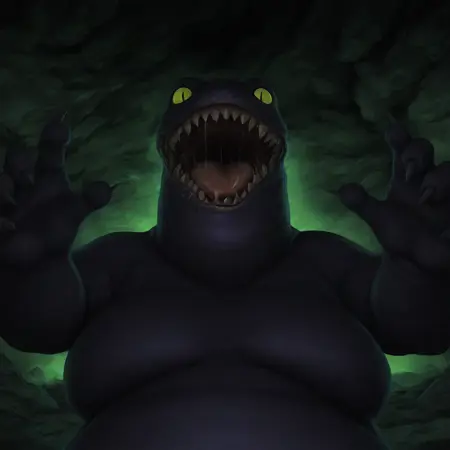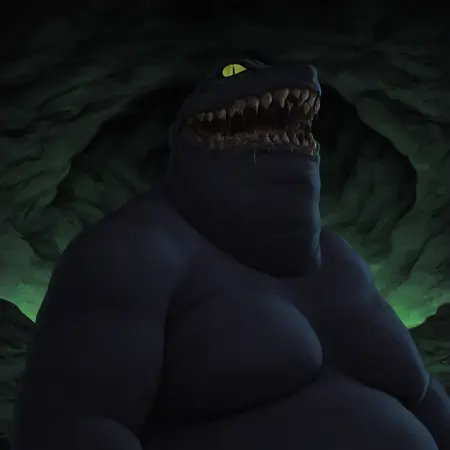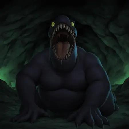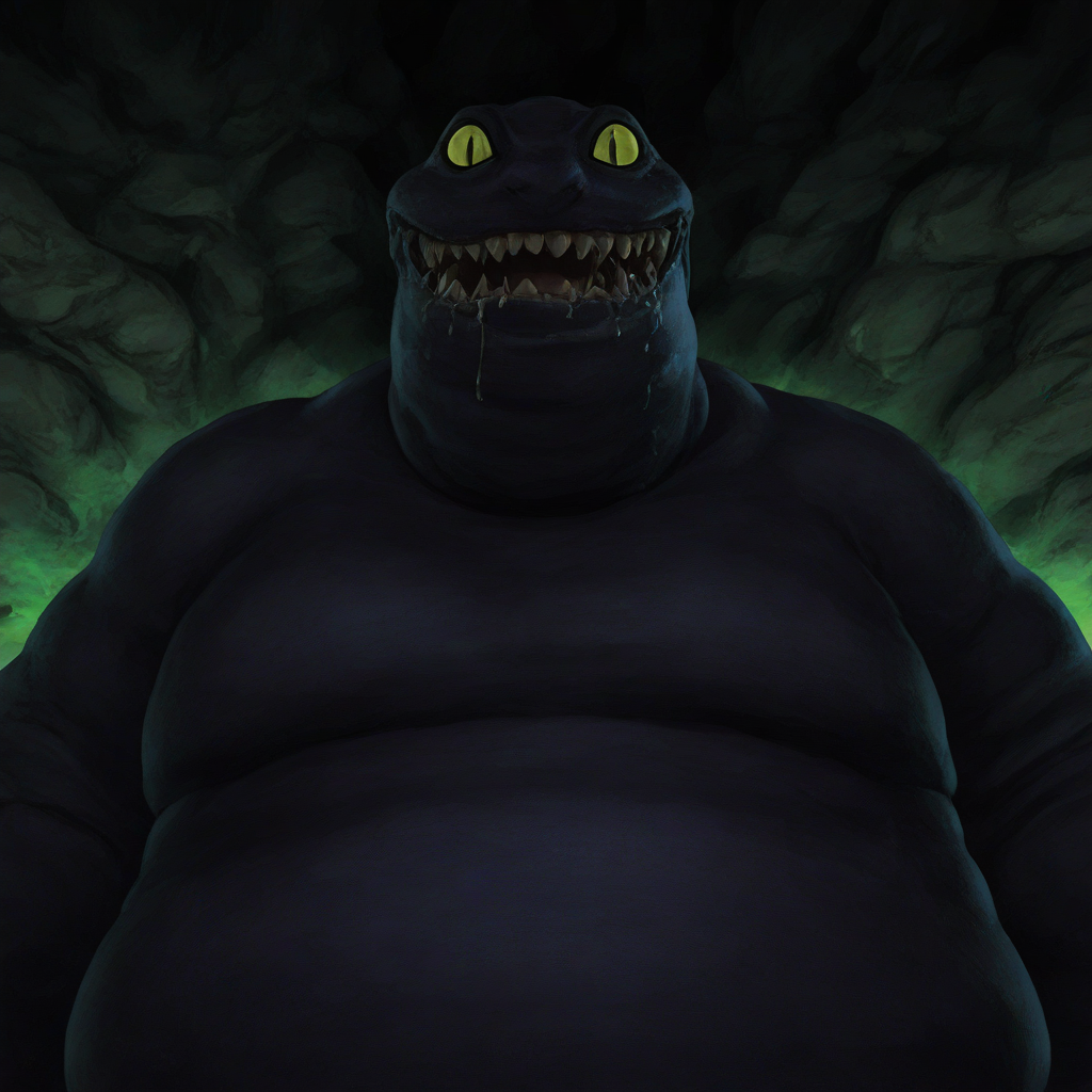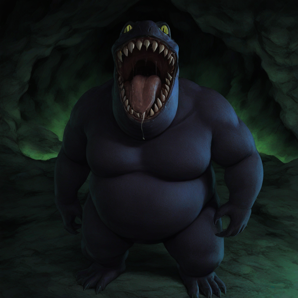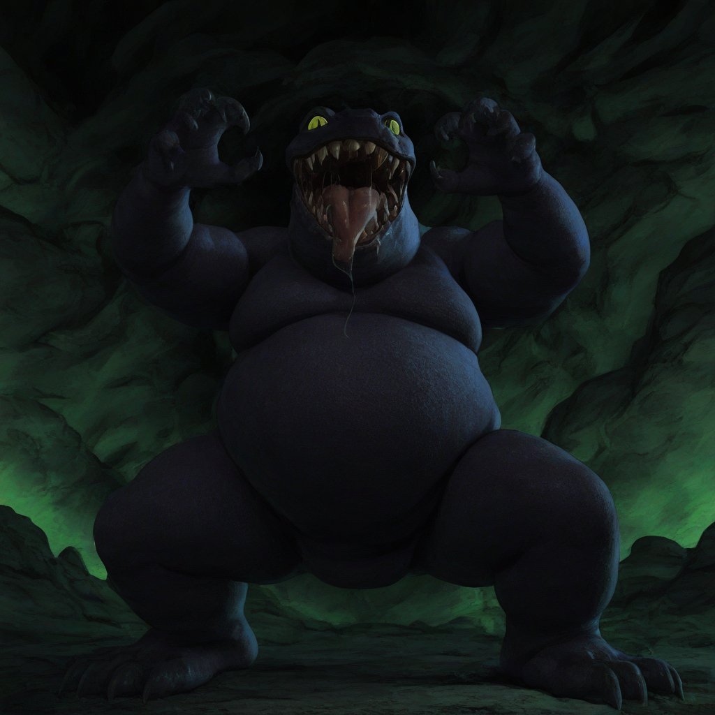 hodcap, 怪物, 牙齿, 尖牙, 巨大, 胖, 肥胖, 黄色眼睛, 彩色皮肤, 紫色皮肤, 口水, 瞳孔呈缝状, 绿色眼睛, 无乳头, 爪子