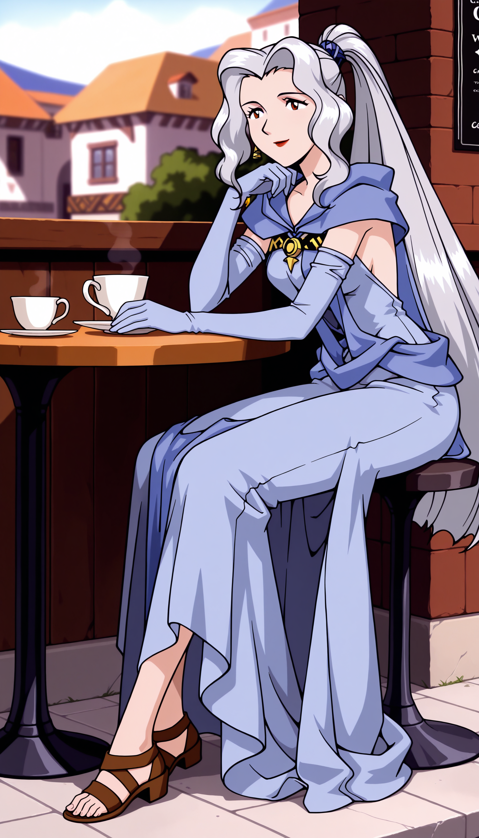 其他标签:双辫子、连衣裙、妆容、珠宝、凉鞋、肘部手套