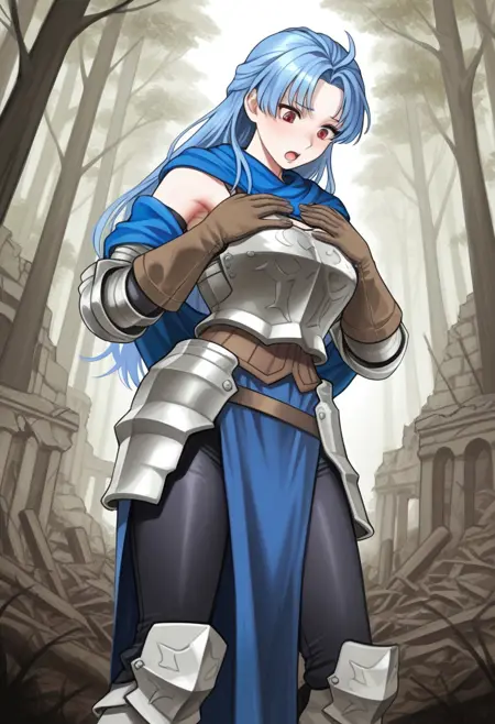 ・[ 파란 스카프 ] 태그가 때로는 너무 직관적일 수 있습니다. 망토 뒤쪽에 여분의 길이가 생긴다면 [ 파란 샬 ]로 대체해 보세요.