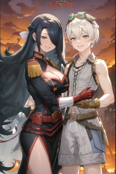 BennetFubuki, a man and a woman, hetero, standing, smile, cowboy shot