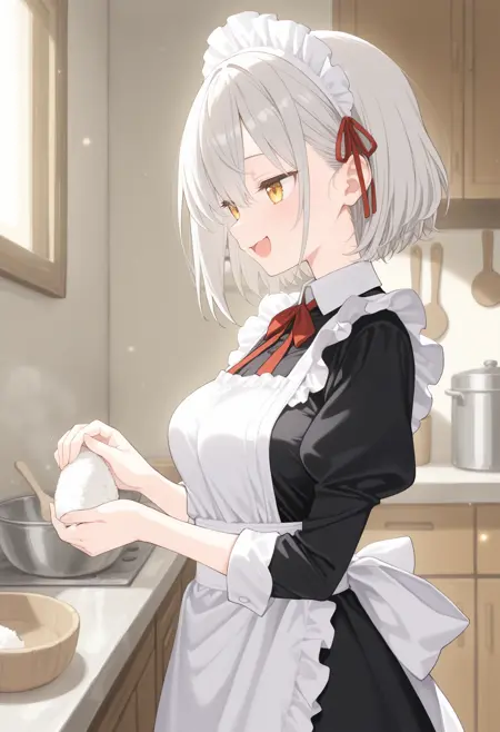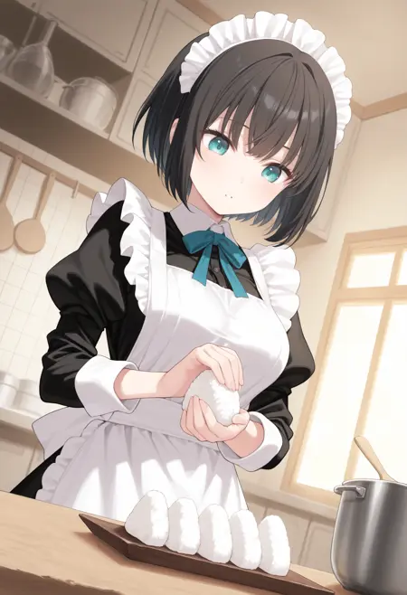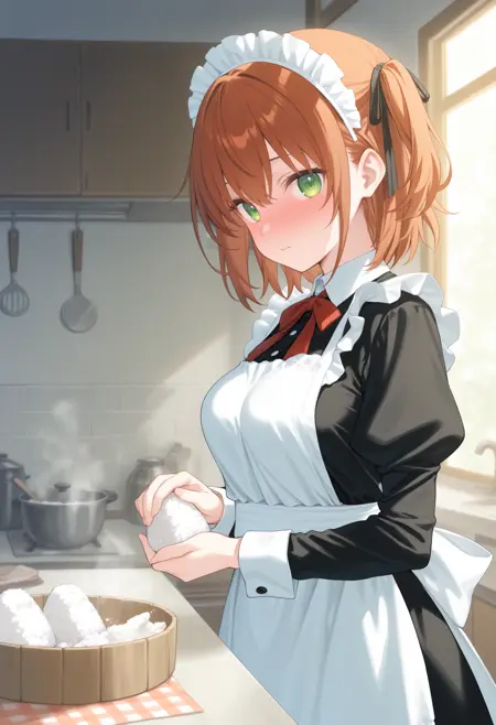 仅使用触发词即可生效,如需更好效果,可自行添加food、rice、holding、cooking、indoors、kitchen等词汇。
