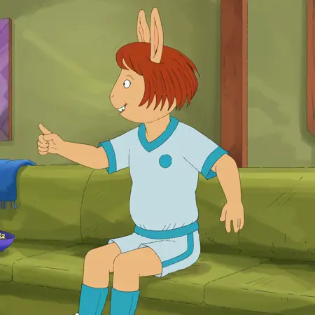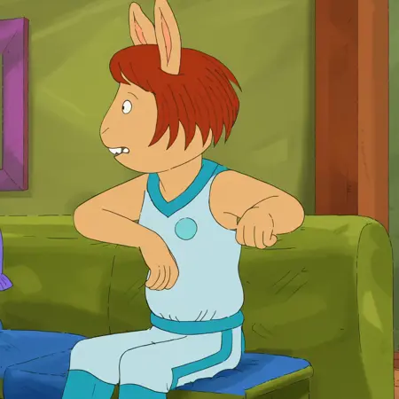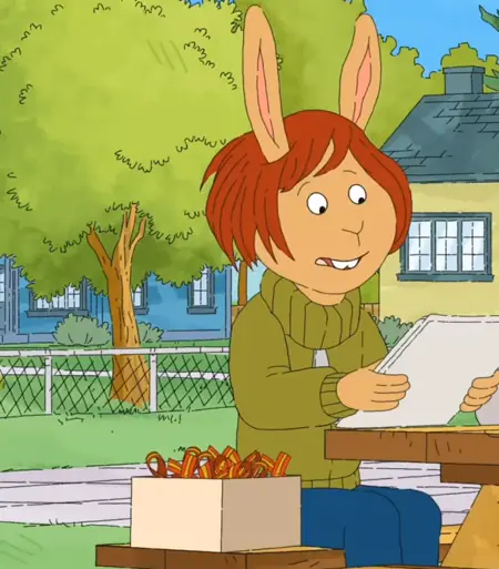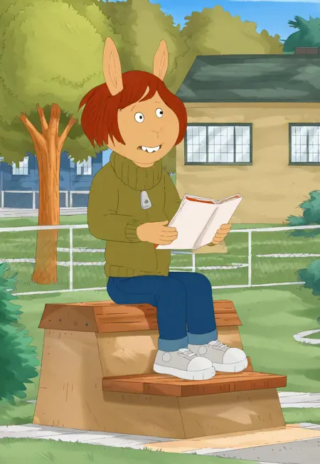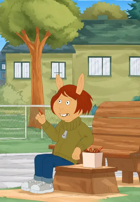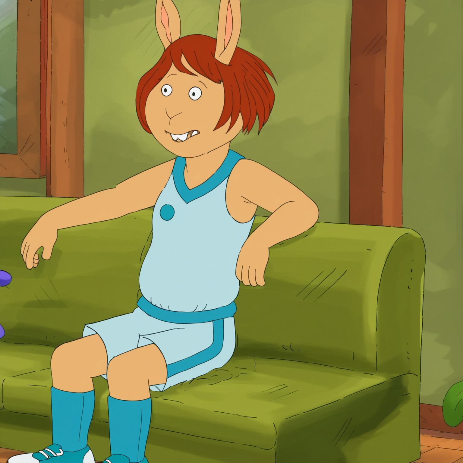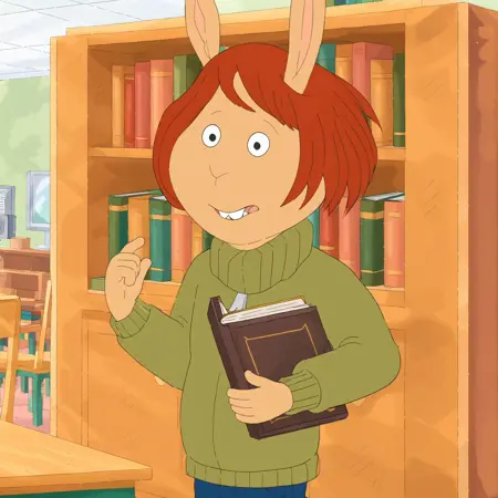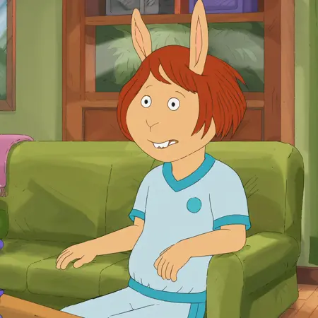 1girl, bucktooth, tan complexion, short auburn hair, rabbit ears,